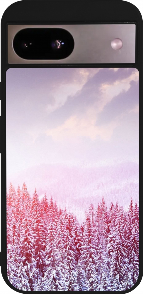Coque Google Pixel 8a - Silicone rigide noir Winter 22 Pink Forest