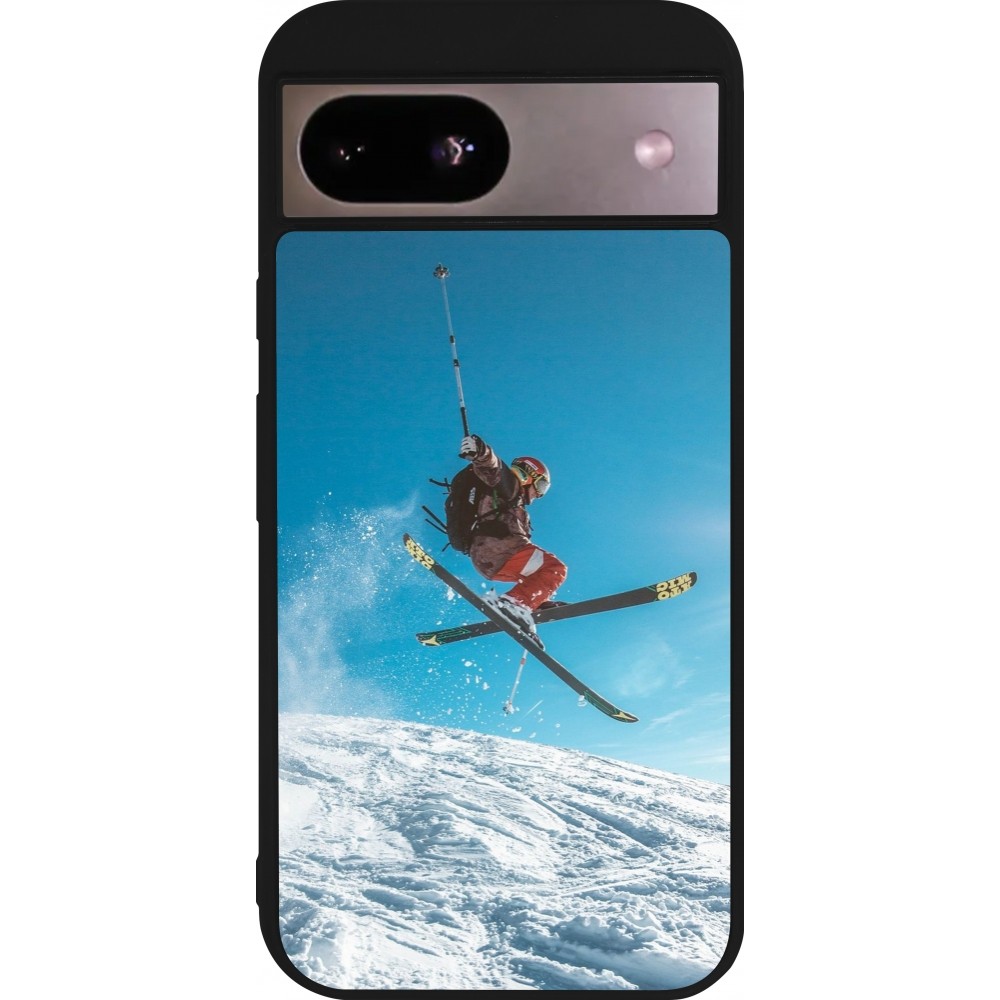 Coque Google Pixel 8a - Silicone rigide noir Winter 22 Ski Jump