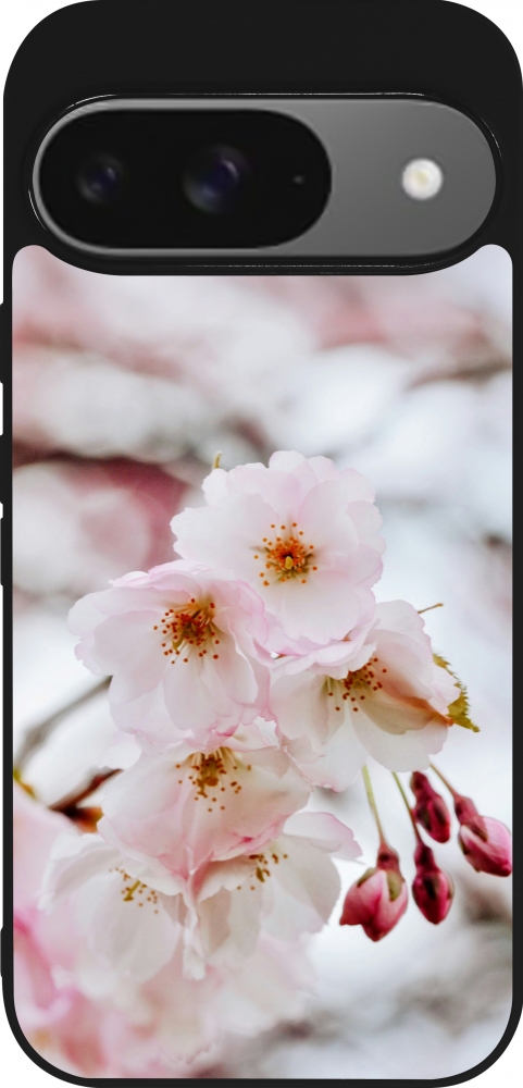 Coque Google Pixel 9 / Pixel 9 Pro - Silicone rigide noir Cherry tree 2026