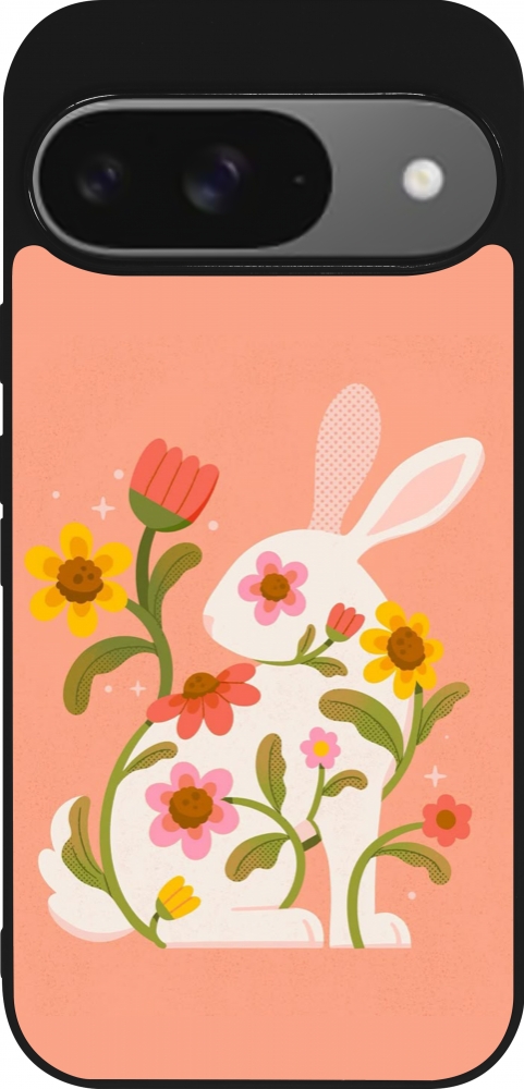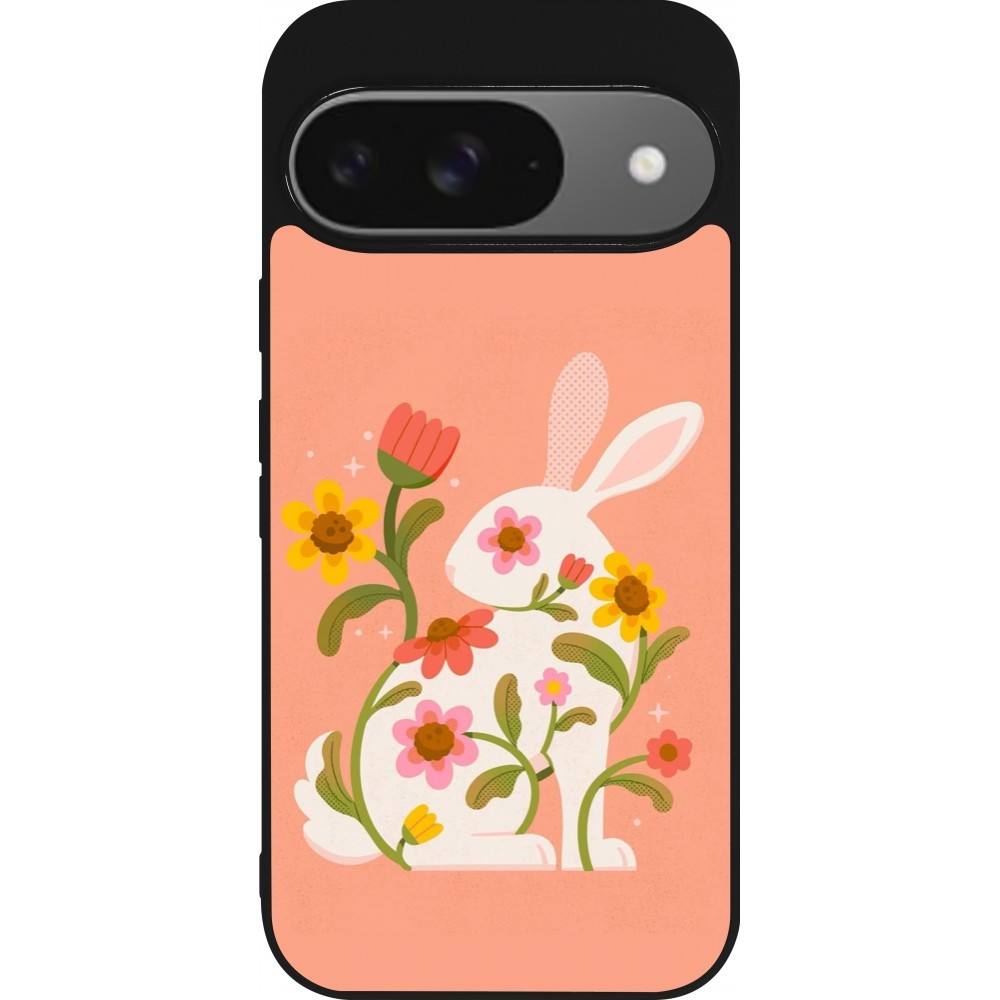 Coque Google Pixel 9 / Pixel 9 Pro - Silicone rigide noir Easter 2026 Rabbit collage