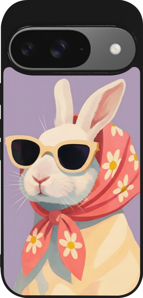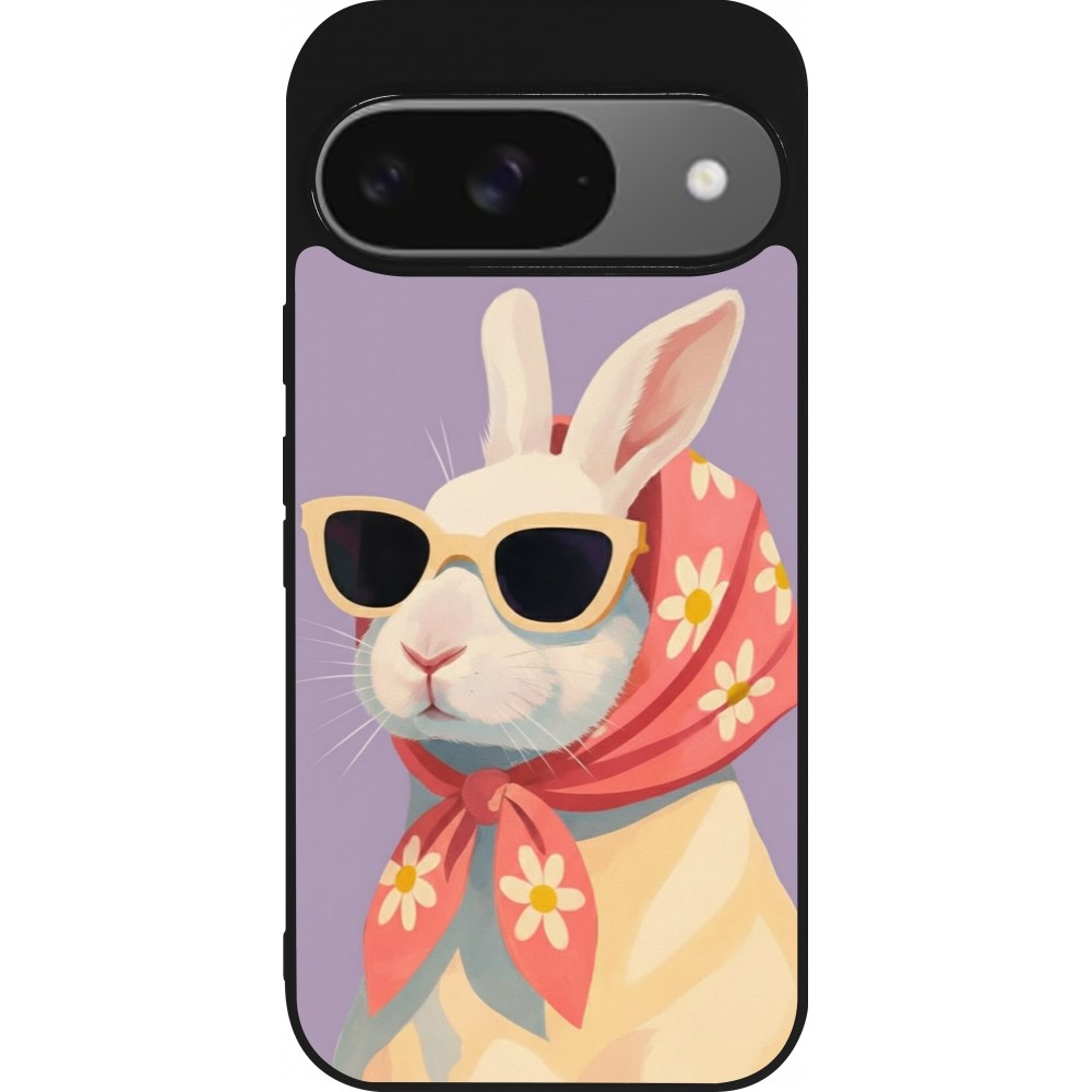 Coque Google Pixel 9 / Pixel 9 Pro - Silicone rigide noir Easter 2026 Rabbit with scarf