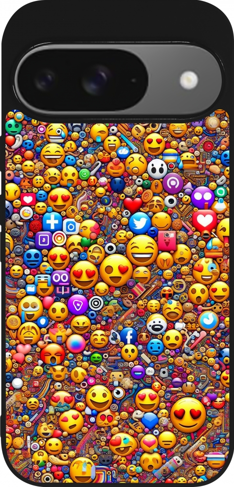 Coque Google Pixel 9 / Pixel 9 Pro - Silicone rigide noir Emoji mixed