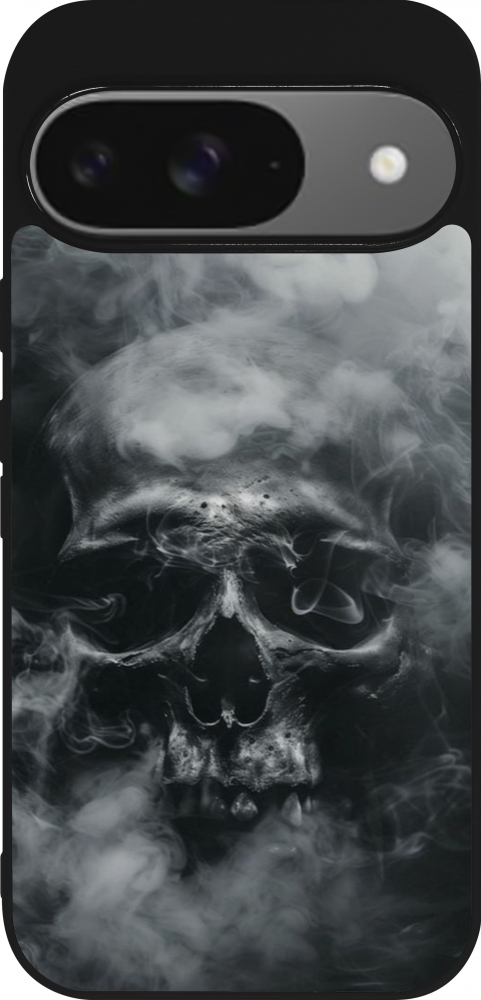 Coque Google Pixel 9 / Pixel 9 Pro - Silicone rigide noir Halloween 2024 smoky skull