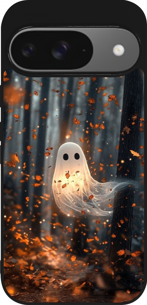 Coque Google Pixel 9 / Pixel 9 Pro - Silicone rigide noir Halloween 2025 Ghost in the forest