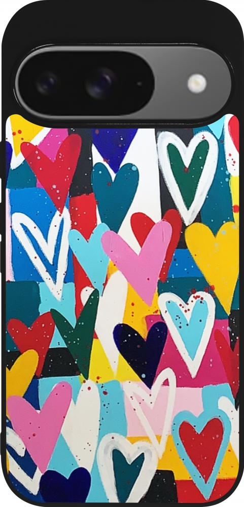 Coque Google Pixel 9 / Pixel 9 Pro - Silicone rigide noir Joyful Hearts