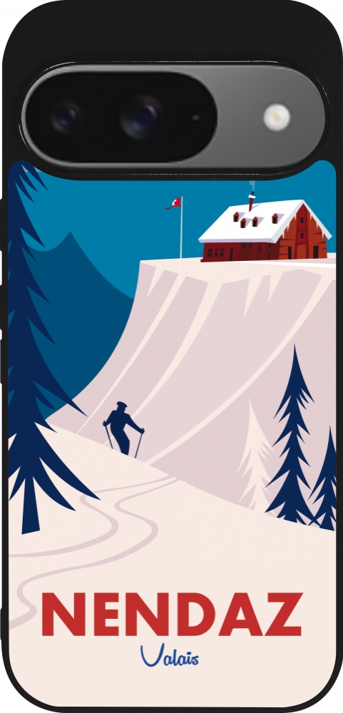 Coque Google Pixel 9 / Pixel 9 Pro - Silicone rigide noir Nendaz Cabane Ski