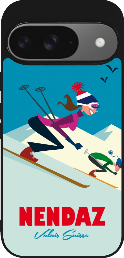 Coque Google Pixel 9 / Pixel 9 Pro - Silicone rigide noir Nendaz Ski Downhill