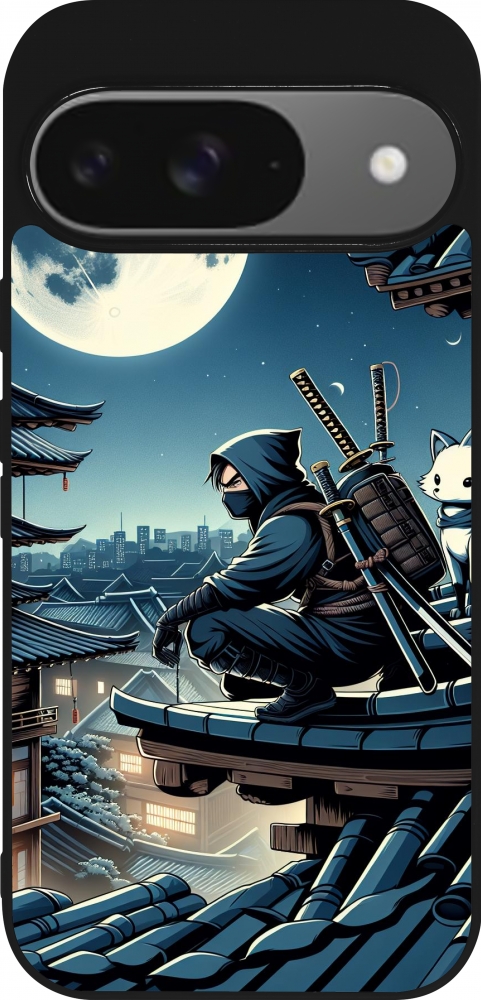 Coque Google Pixel 9 / Pixel 9 Pro - Silicone rigide noir Ninja sous la lune