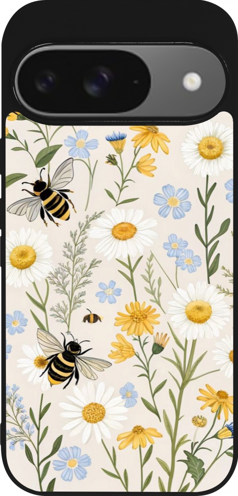 Coque Google Pixel 9 / Pixel 9 Pro - Silicone rigide noir Pattern bees 2026