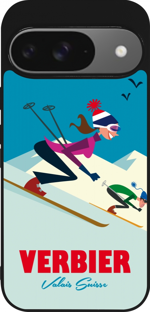 Coque Google Pixel 9 / Pixel 9 Pro - Silicone rigide noir Verbier Ski Downhill