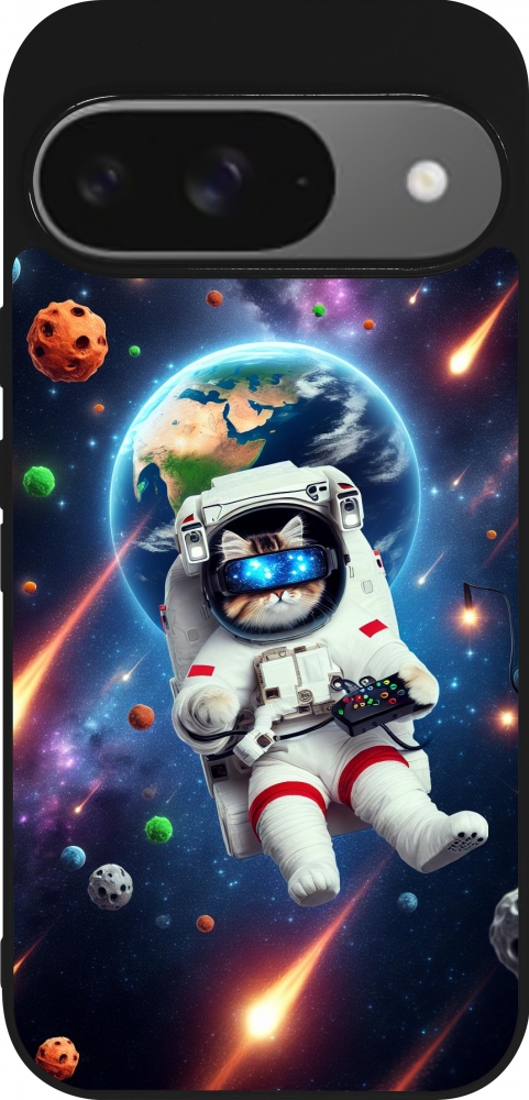 Coque Google Pixel 9 / Pixel 9 Pro - Silicone rigide noir VR SpaceCat Odyssey
