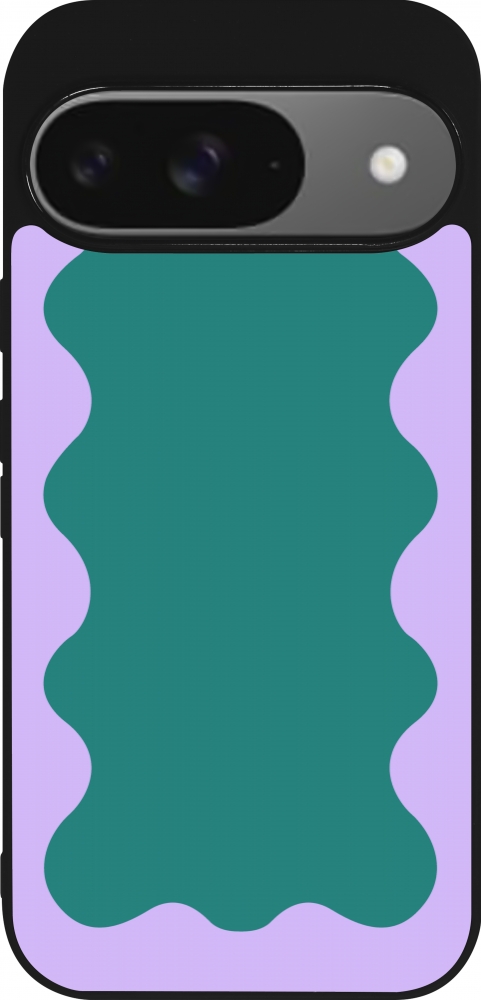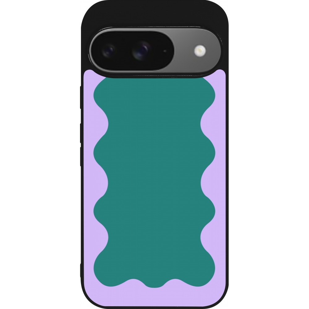 Coque Google Pixel 9 / Pixel 9 Pro - Silicone rigide noir Wavy Rectangle Green Purple
