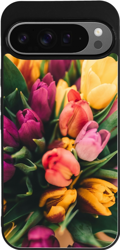 Coque Google Pixel 9 Pro XL - Silicone rigide noir Bouquet of tulips Spring 2026