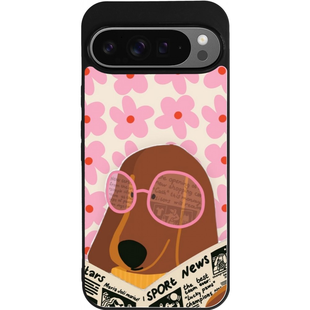 Coque Google Pixel 9 Pro XL - Silicone rigide noir Dog with newspaper Spring 2026