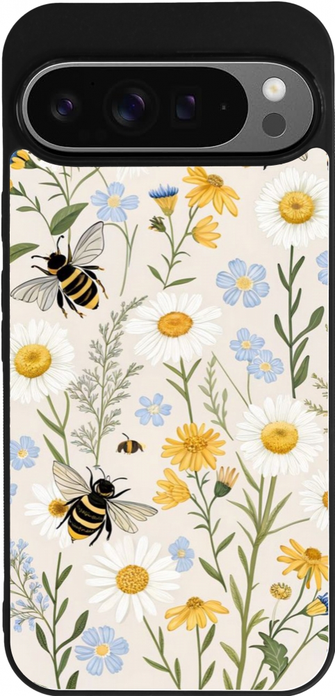 Coque Google Pixel 9 Pro XL - Silicone rigide noir Pattern bees Spring 2026