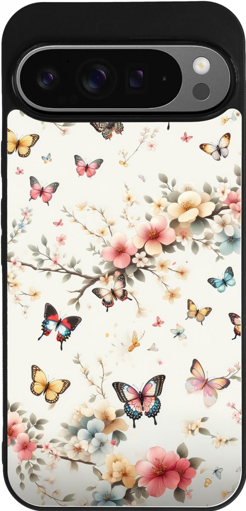 Coque Google Pixel 9 Pro XL - Silicone rigide noir Spring 25 Papillons Légers