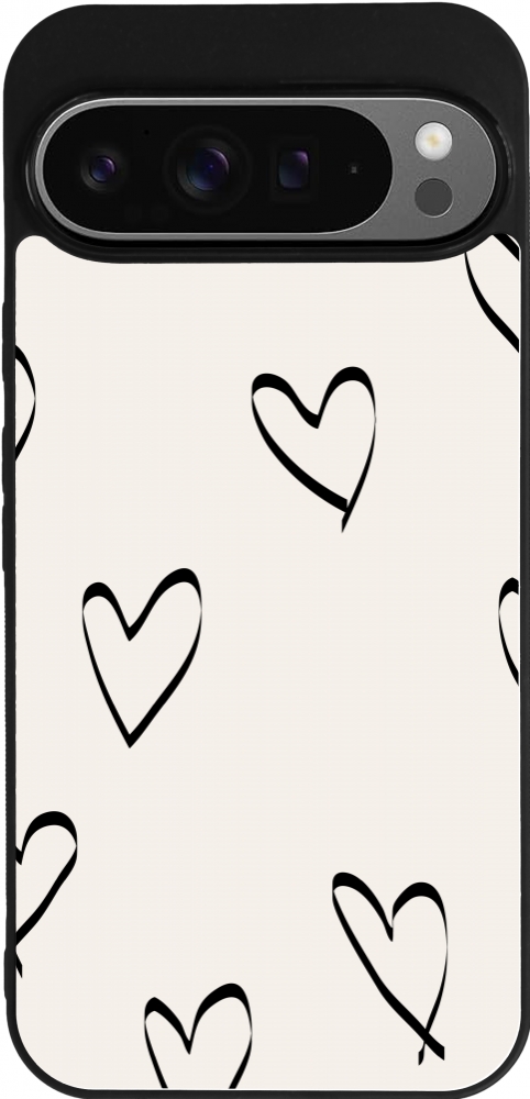 Coque Google Pixel 9 Pro XL - Silicone rigide noir Valentine 2023 minimalist hearts