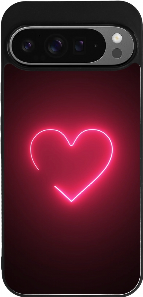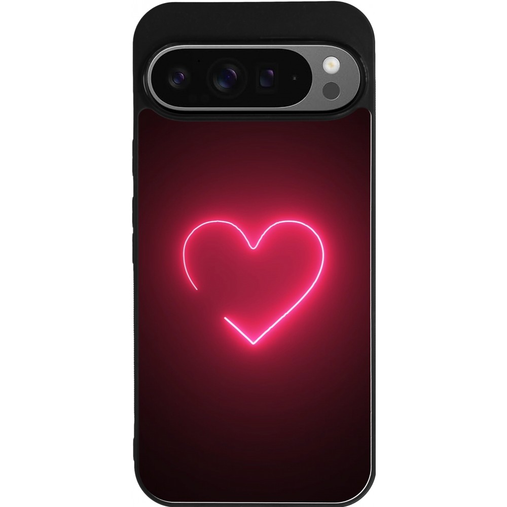 Coque Google Pixel 9 Pro XL - Silicone rigide noir Valentine 2023 single neon heart