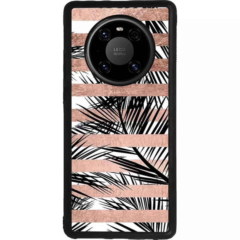 Coque Huawei Mate 40 Pro - Silicone rigide noir Palm trees gold stripes