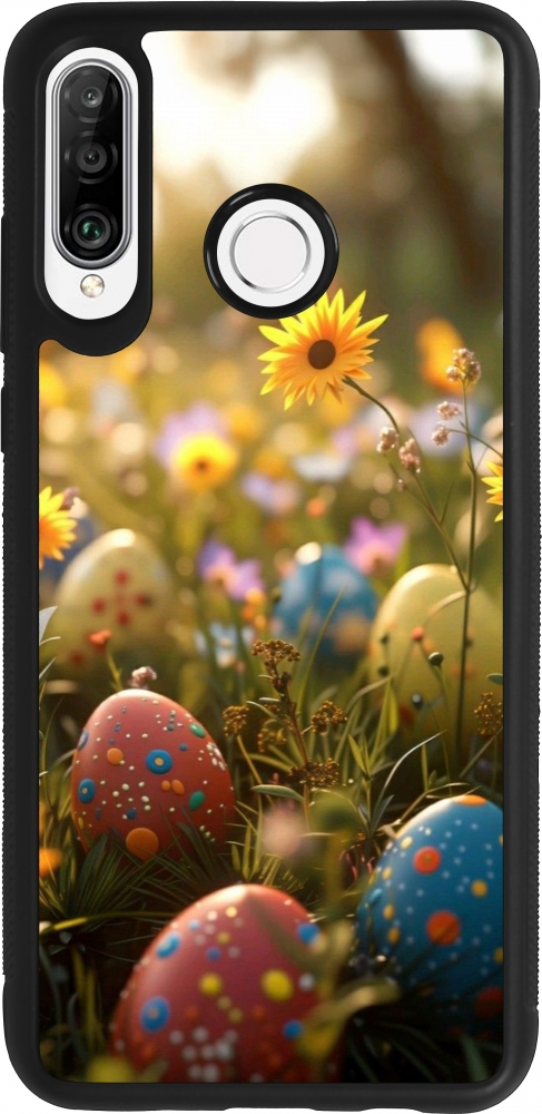 Coque Huawei P30 Lite - Silicone rigide noir Easter 2026 Decorated eggs