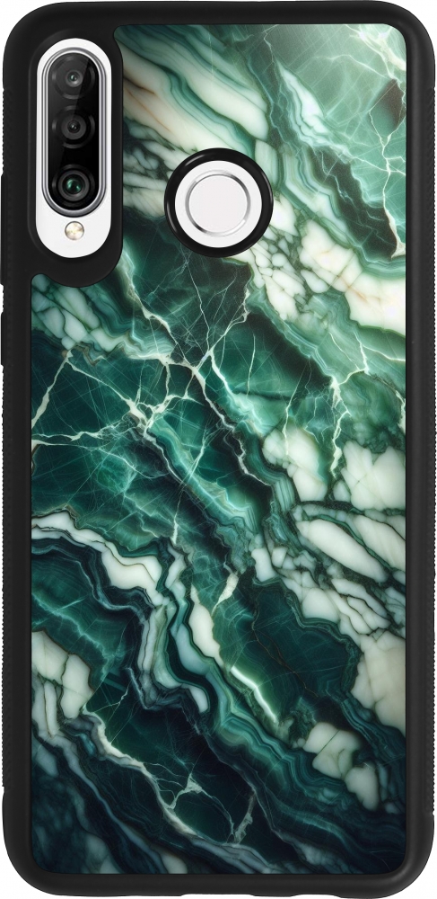 Coque Huawei P30 Lite - Silicone rigide noir Marbre vert majestueux