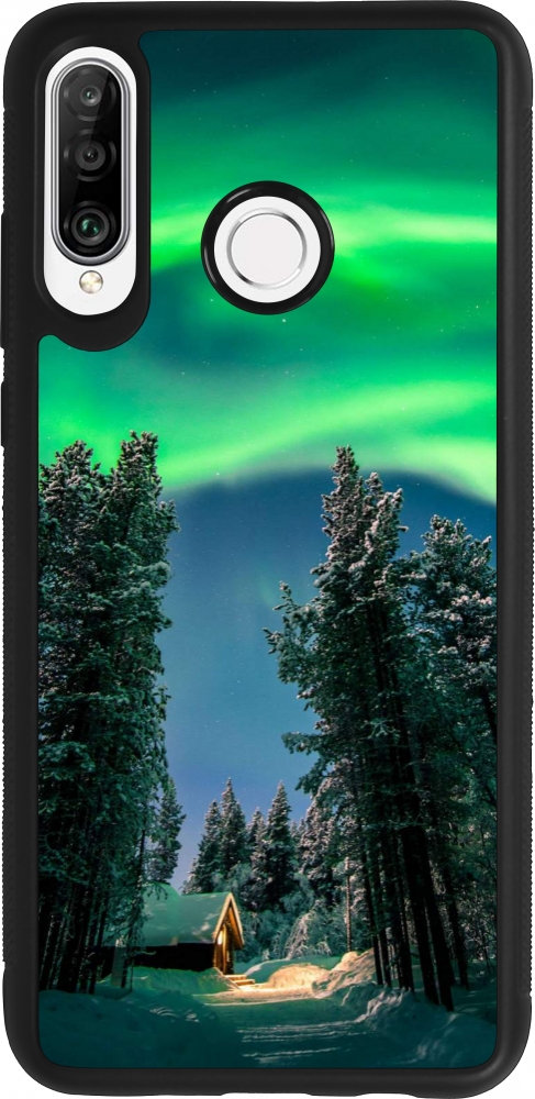 Coque Huawei P30 Lite - Silicone rigide noir Winter 22 Northern Lights