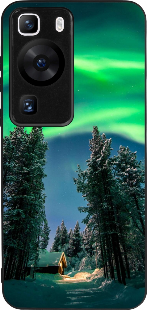 Coque Huawei P60 - Silicone rigide noir Winter 22 Northern Lights