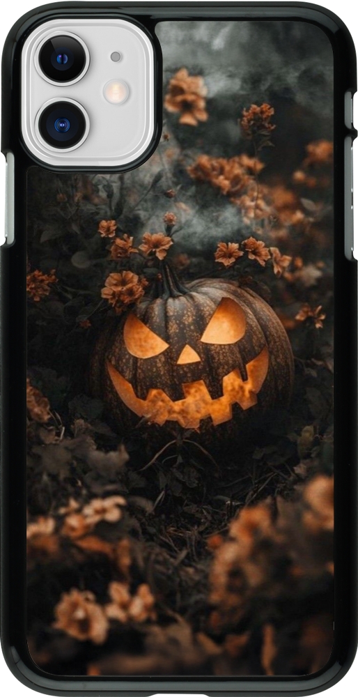Coque iPhone 11 - Halloween 2025 Pumpkin with flowers
