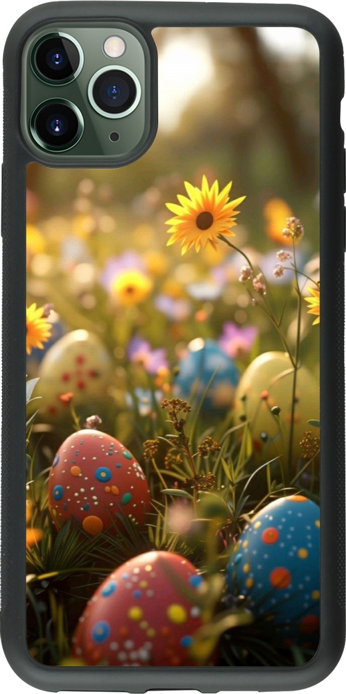 Coque iPhone 11 Pro Max - Silicone rigide noir Easter 2026 Decorated eggs