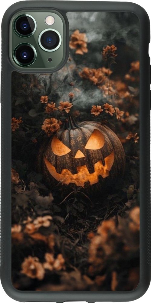 Coque iPhone 11 Pro Max - Silicone rigide noir Halloween 2025 Pumpkin with flowers