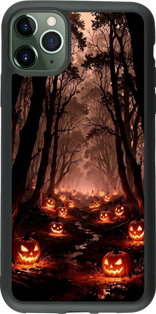 Coque iPhone 11 Pro Max - Silicone rigide noir Halloween 2025 Road of Terrifying Pumpkins