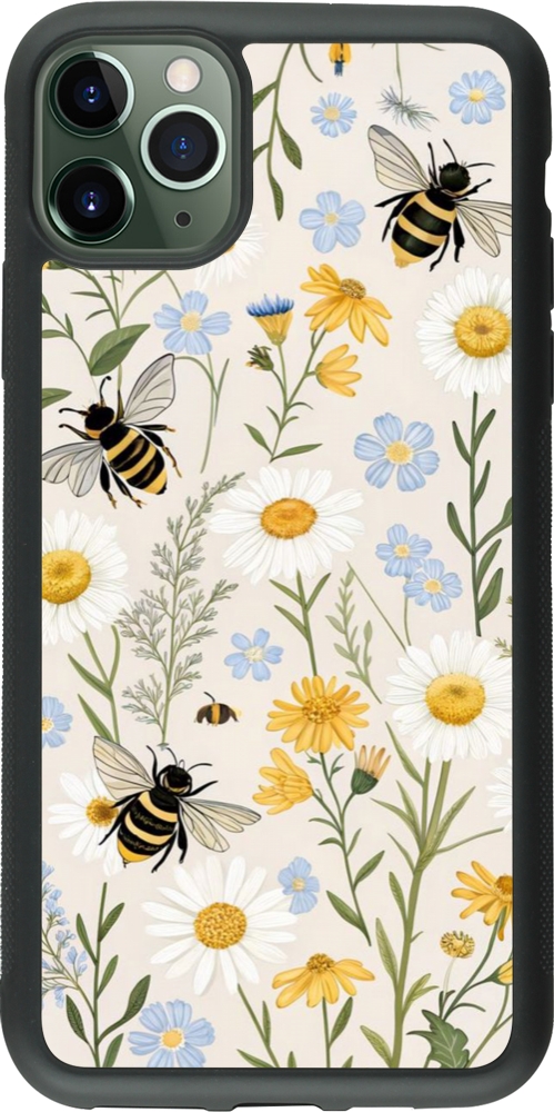 Coque iPhone 11 Pro Max - Silicone rigide noir Pattern bees Spring 2026