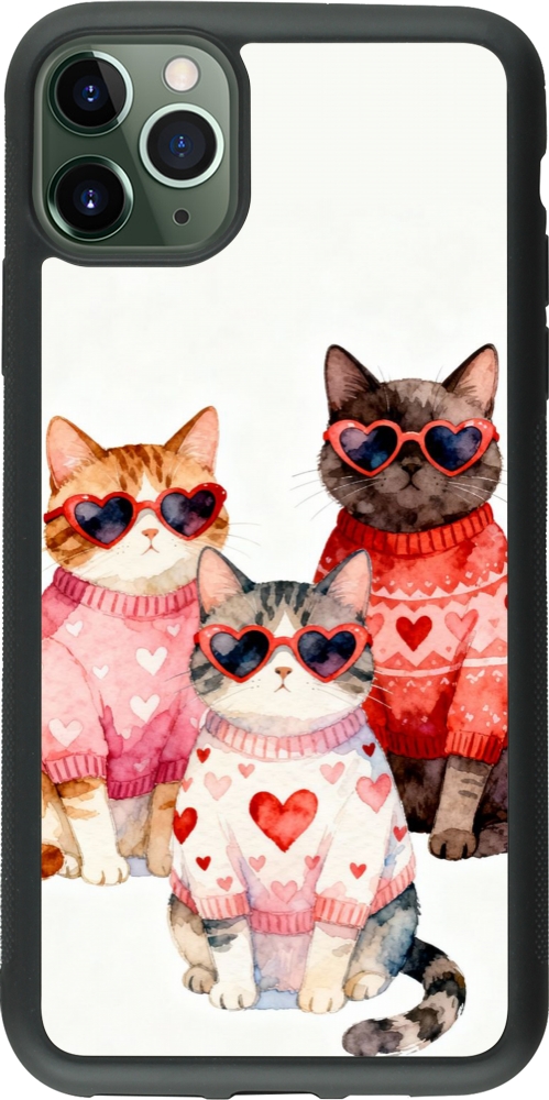 Coque iPhone 11 Pro Max - Silicone rigide noir Saint Valentines Day 26 Cat Love