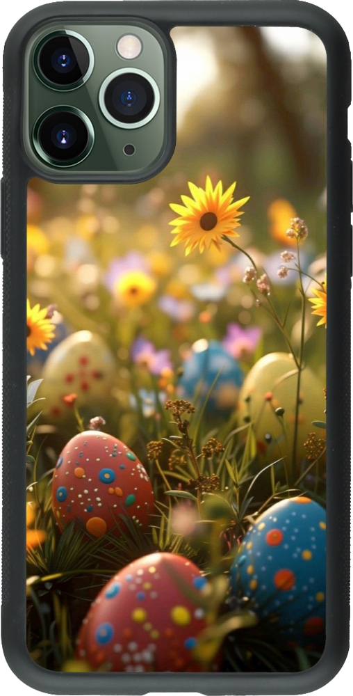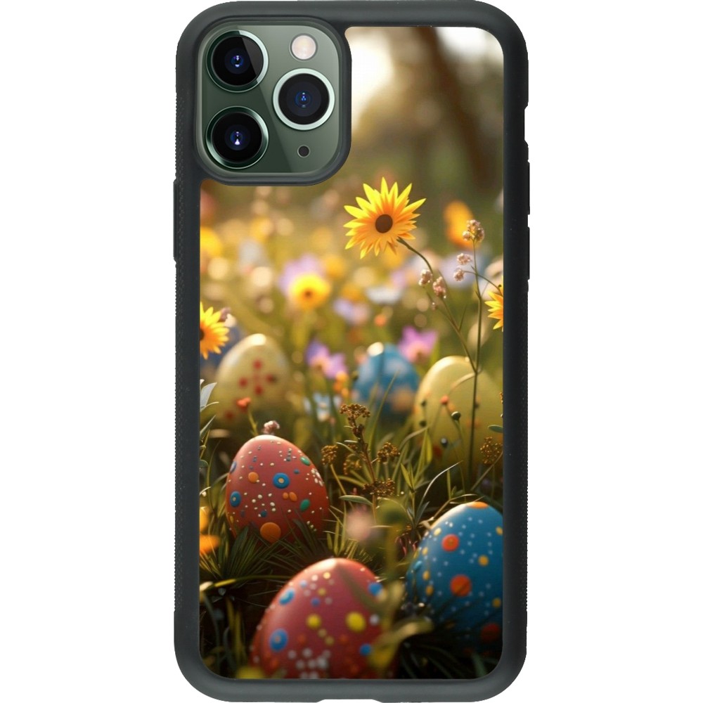 Coque iPhone 11 Pro - Silicone rigide noir Easter 2026 Decorated eggs