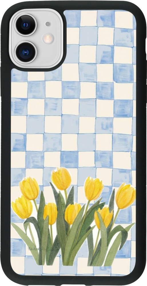Coque iPhone 11 - Silicone rigide noir Blue vichy tulips Spring 2026