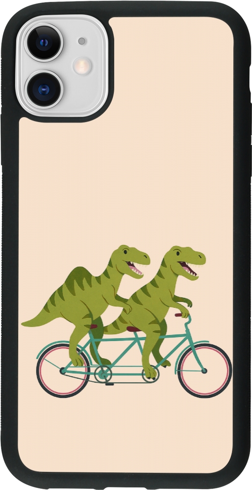 Coque iPhone 11 - Silicone rigide noir Dinosaurs on bikes 2026