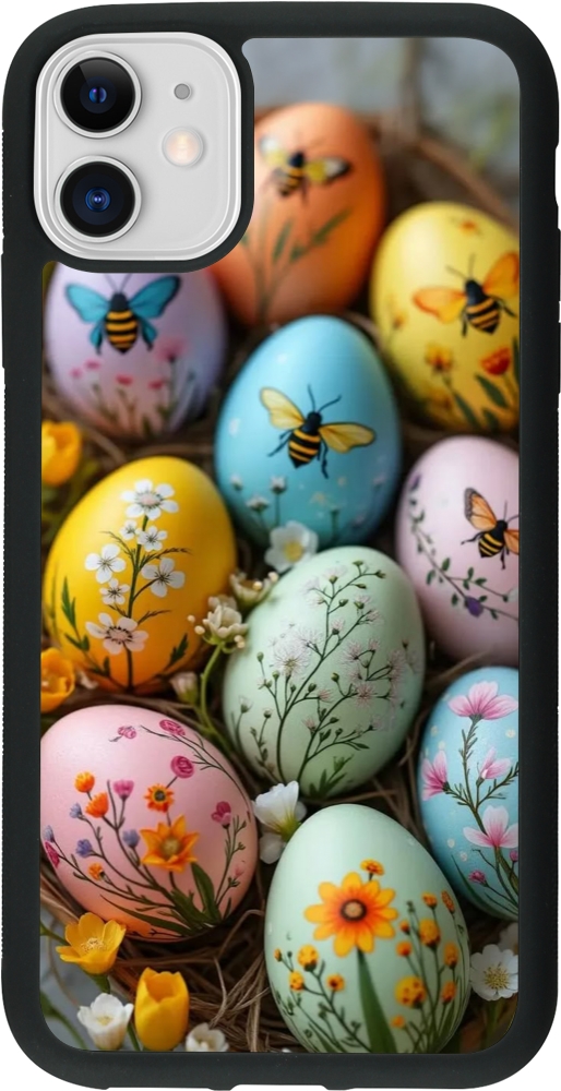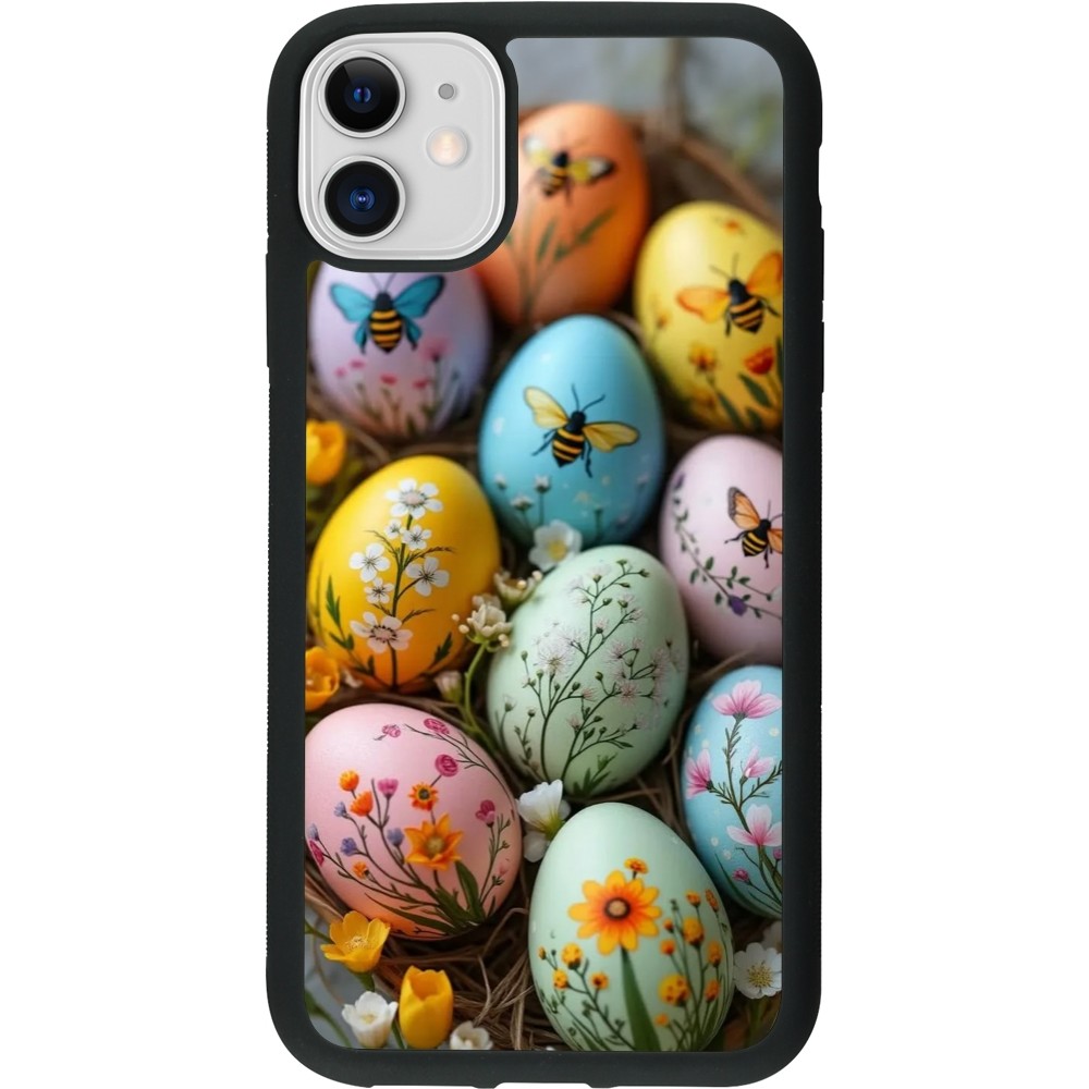 Coque iPhone 11 - Silicone rigide noir Easter 2026 Eggs with bees