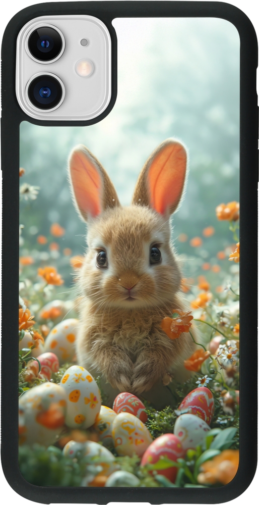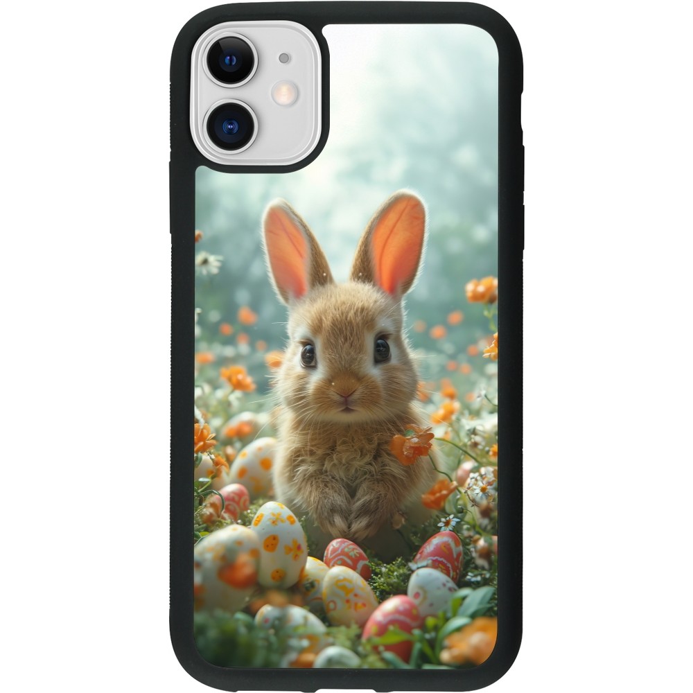 Coque iPhone 11 - Silicone rigide noir Easter 2026 Rabbit in the garden