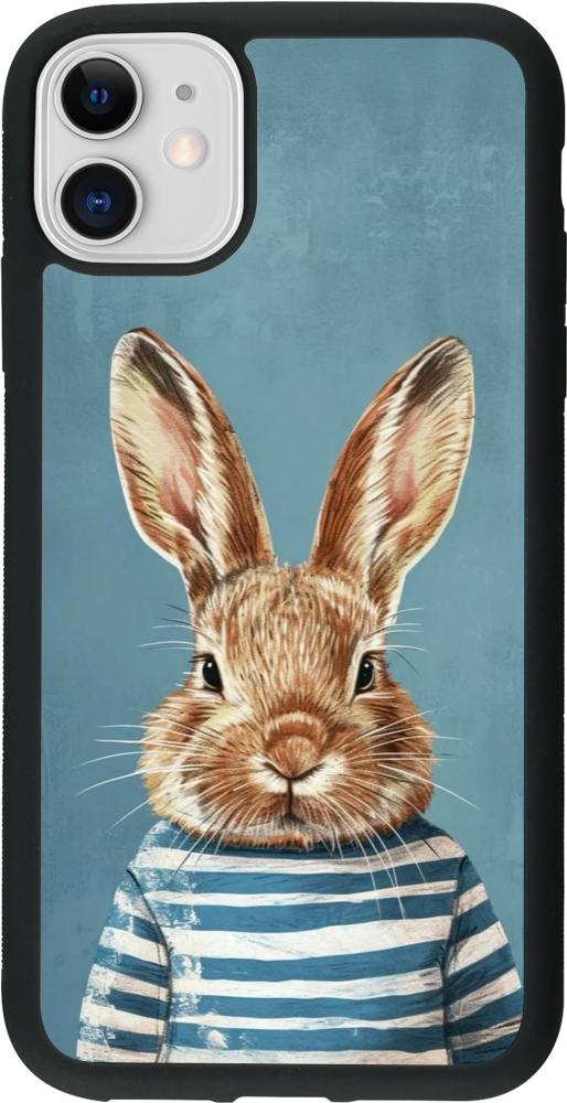 Coque iPhone 11 - Silicone rigide noir Easter 2026 Rabbit navy