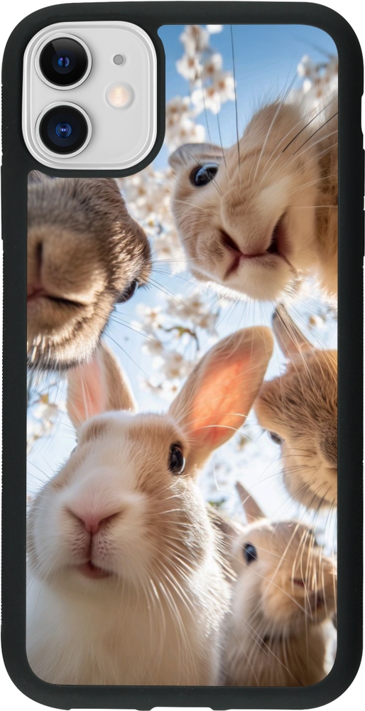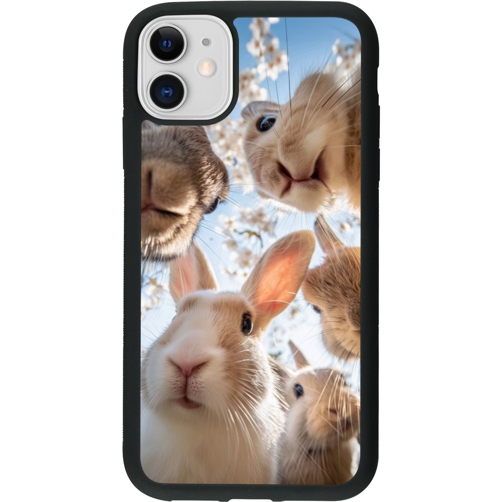Coque iPhone 11 - Silicone rigide noir Easter 2026 Rabbits