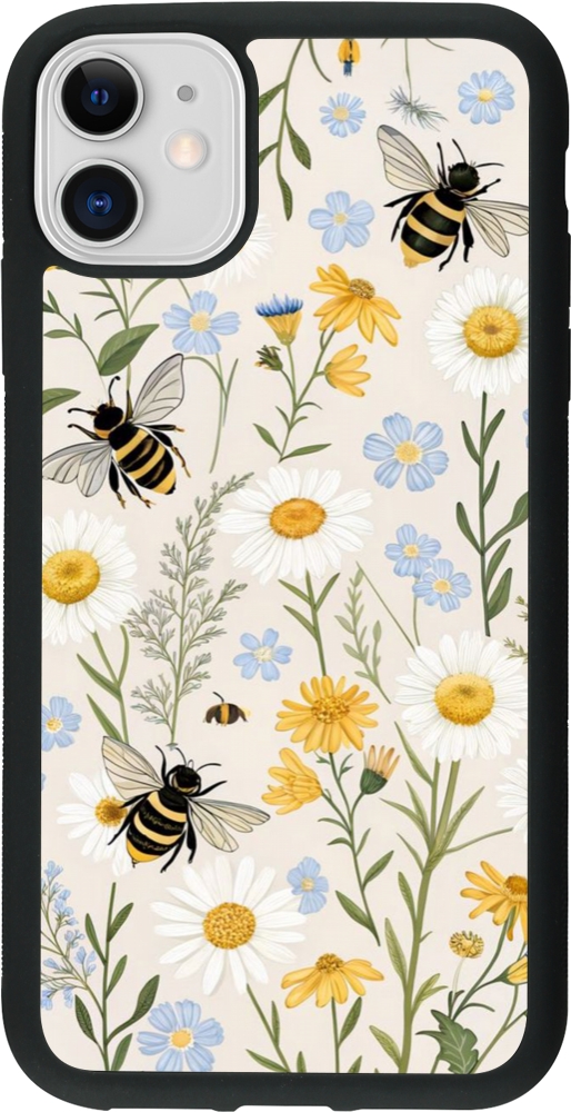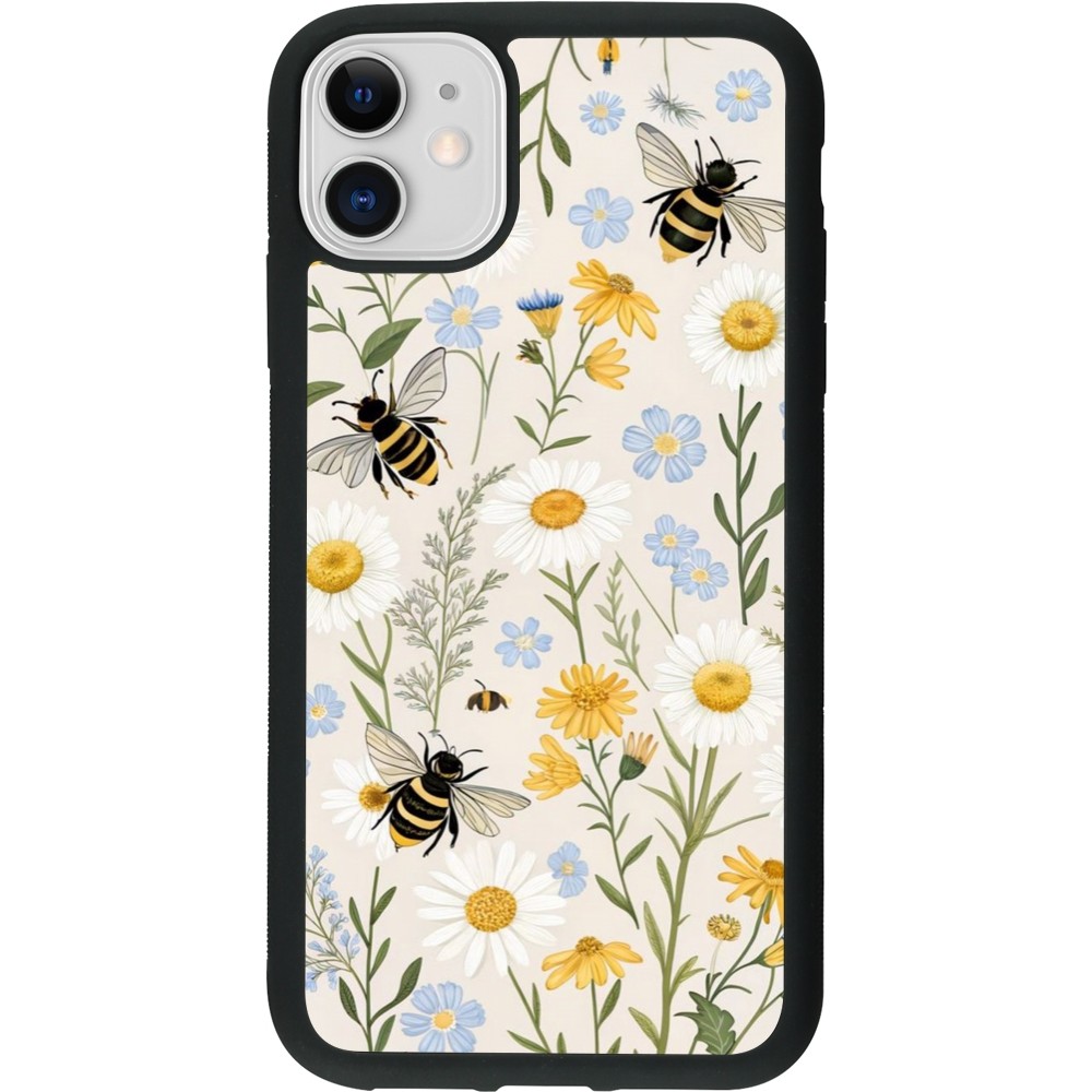 Coque iPhone 11 - Silicone rigide noir Pattern bees Spring 2026