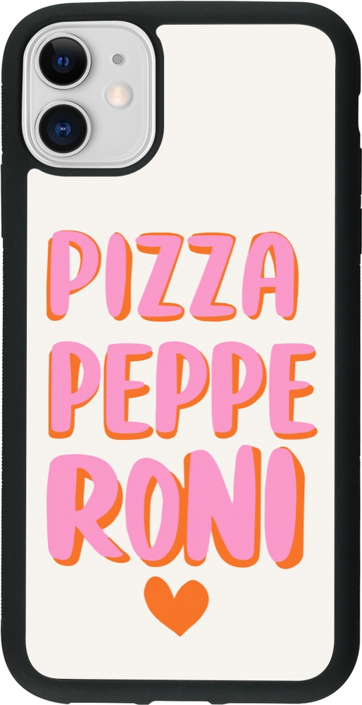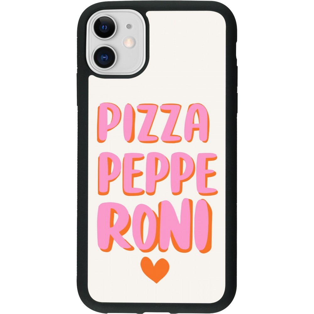 Coque iPhone 11 - Silicone rigide noir Pizza pepperoni 2026