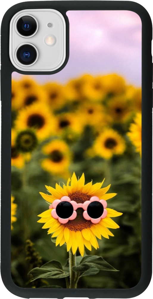 Coque iPhone 11 - Silicone rigide noir Sunflower with glasses Spring 2026