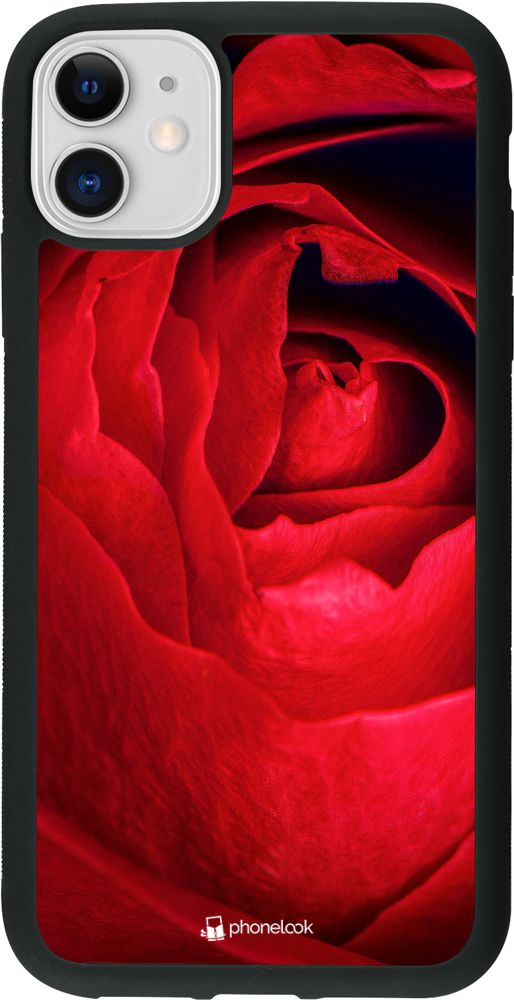 Coque iPhone 11 - Silicone rigide noir Valentine 2022 Rose