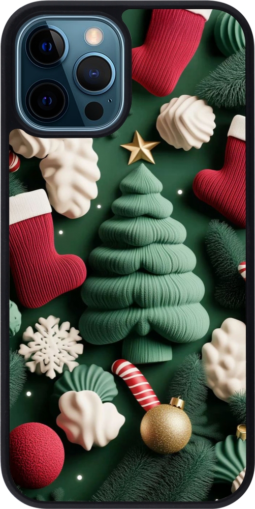 Coque iPhone 12 / 12 Pro - Silicone rigide noir Christmas 25 Christmas textiles