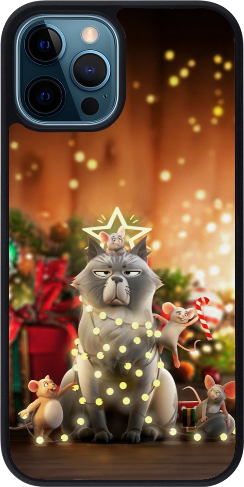 Coque iPhone 12 / 12 Pro - Silicone rigide noir Christmas 25 Xmas Cat