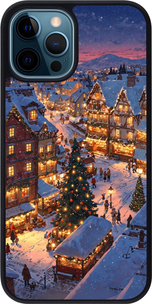 Coque iPhone 12 / 12 Pro - Silicone rigide noir Christmas 25 Xmas Village