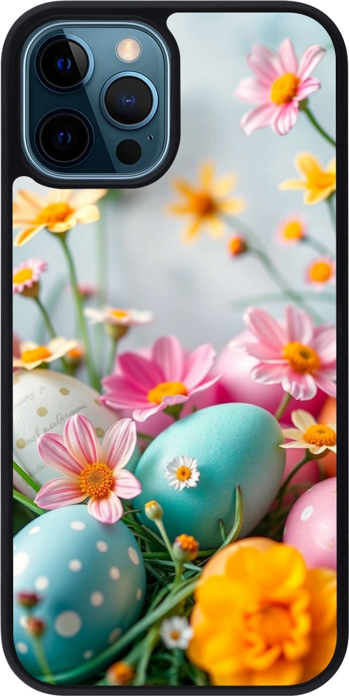 Coque iPhone 12 / 12 Pro - Silicone rigide noir Easter 2026 Eggs with flowers