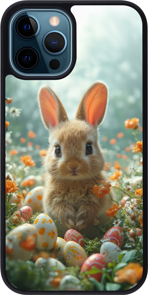 Coque iPhone 12 / 12 Pro - Silicone rigide noir Easter 2026 Rabbit in the garden