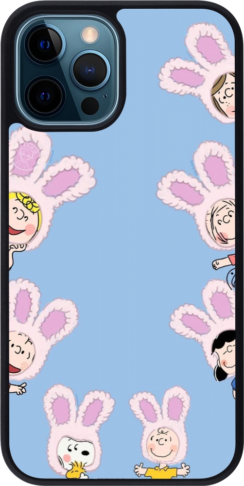 Coque iPhone 12 / 12 Pro - Silicone rigide noir Easter 2026 Snoopy